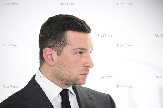Légende : Jordan Bardella, président du RN, s'exprime après la mort du militant nationaliste Quentin Deranque, mettant en cause l'extrême gauche et la responsabilité de la France Insoumise /// Jordan Bardella, president of the Rassemblement National, speaks out after the death of nationalist activist Quentin Deranque, blaming the far left and the responsibility of La France Insoumise - Paris - 18/02/2026 - Photo © Lionel Préau +33 (0)6 68 12 83 77