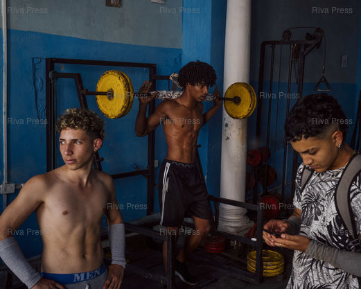 Légende : Des jeunes Cubains s'entrainent à la salle de musculation 'Fenix', à Santa Clara, Cuba, le 9 janvier 2026. © Lucien Lung / Riva Press *** Young Cubans train at the 'Fenix' gym in Santa Clara, Cuba, on January 9, 2026. © Lucien Lung / Riva Press