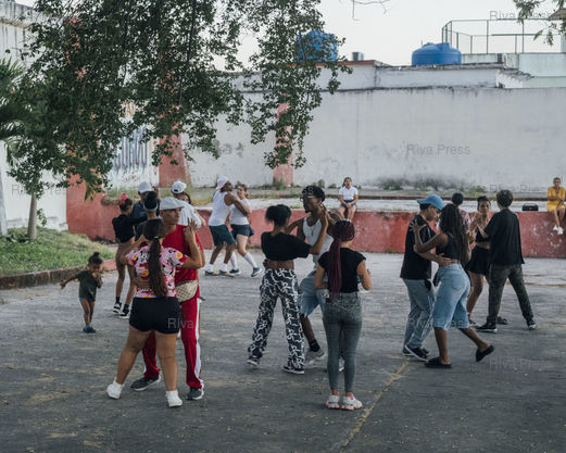 Légende : Cours de danse dans un jardin municipal de Santa Clara, Cuba, le 9 janvier 2026. © Lucien Lung / Riva Press *** Dance class in a municipal garden in Santa Clara, Cuba, January 9, 2026. © Lucien Lung / Riva Press