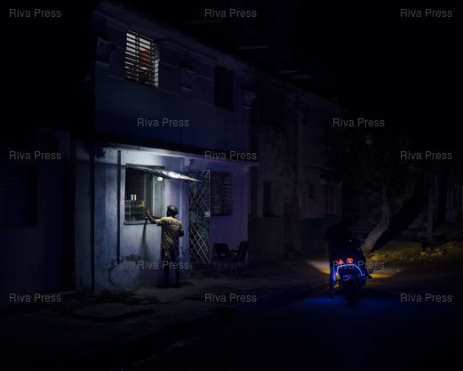 Légende : Un homme achète quelques produits dans une 'Mipyme' équipée de lumière sur batterie, lors d'une coupure d'électricité. Cienfuegos, le 10 janvier 2026. © Lucien Lung / Riva Press *** A man buys some items from a 'Mipyme' mobile grocery store equipped with battery-powered lights during a power outage. Cienfuegos, January 10, 2026. © Lucien Lung / Riva Press