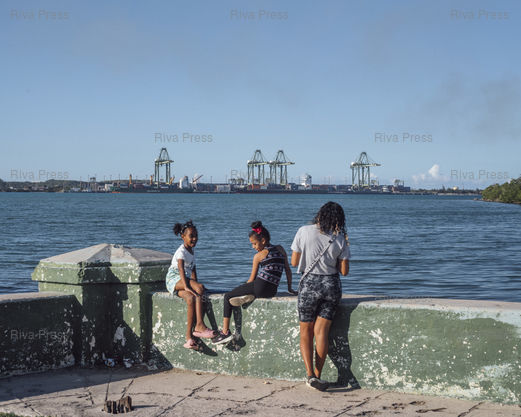 Légende : Des habitants profitent du petit front de mer sur le port de Mariel. Cuba, le 6 janvier 2026. © Lucien Lung / Riva Press *** Residents enjoy the small waterfront on the port of Mariel. Cuba, January 6, 2026. © Lucien Lung / Riva Press