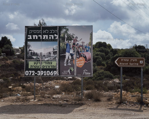 Légende : Publicité pour un logement dans une colonie israélienne de Cisjordanie, Ateret, Cisjordanie, le 1er octobre 2024. © Lucien Lung / Riva Press *** Advertisement for housing in an Israeli settlement in the West Bank, Ateret, West Bank, October 1, 2024. © Lucien Lung / Riva Press