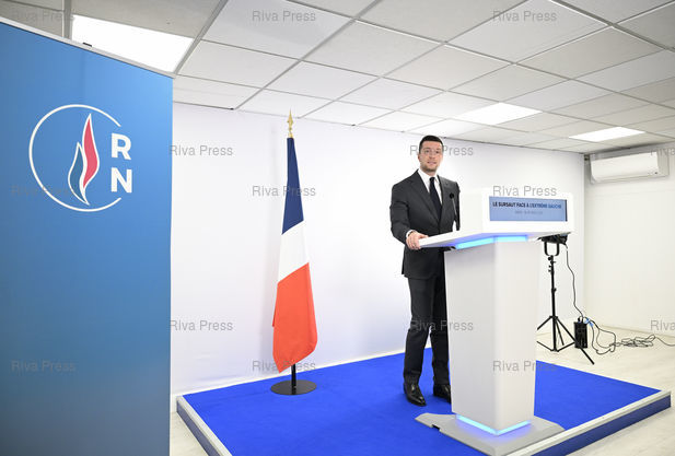 Légende : Jordan Bardella, président du RN, s'exprime après la mort du militant nationaliste Quentin Deranque, mettant en cause l'extrême gauche et la responsabilité de la France Insoumise /// Jordan Bardella, president of the Rassemblement National, speaks out after the death of nationalist activist Quentin Deranque, blaming the far left and the responsibility of La France Insoumise - Paris - 18/02/2026 - Photo © Lionel Préau +33 (0)6 68 12 83 77