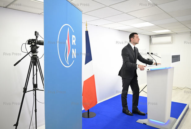 Légende : Jordan Bardella, président du RN, s'exprime après la mort du militant nationaliste Quentin Deranque, mettant en cause l'extrême gauche et la responsabilité de la France Insoumise /// Jordan Bardella, president of the Rassemblement National, speaks out after the death of nationalist activist Quentin Deranque, blaming the far left and the responsibility of La France Insoumise - Paris - 18/02/2026 - Photo © Lionel Préau +33 (0)6 68 12 83 77