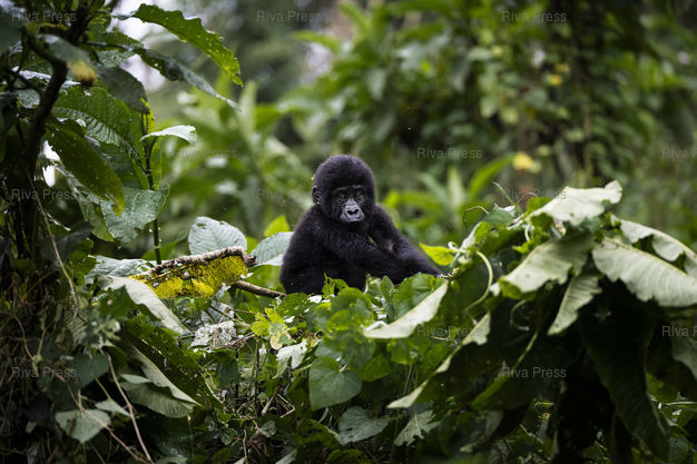 Légende : Un jeune gorille de montagne du groupe Bweza dans le parc national Bwindi Impenetrable Forrest a l'Ouest de l'Ouganda. Le 31/10/2024 /// A young mountain gorilla from the Bweza group in Bwindi Impenetrable Forest National Park in western Uganda. On October 31, 2024 /// PHOTO Vincent Boisot