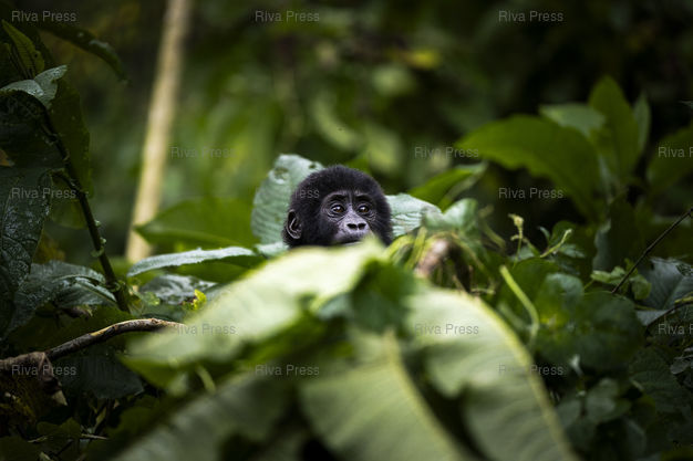 Légende : Un jeune gorille de montagne du groupe Bweza dans le parc national Bwindi Impenetrable Forrest a l'Ouest de l'Ouganda. Le 31/10/2024 /// A young mountain gorilla from the Bweza group in Bwindi Impenetrable Forest National Park in western Uganda. On October 31, 2024 /// PHOTO Vincent Boisot