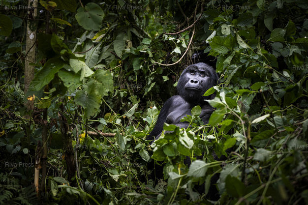 Légende : Un dos argente gorille de montagne du groupe Bweza dans le parc national Bwindi Impenetrable Forrest a l'Ouest de l'Ouganda. Le 31/10/2024 /// A silverback mountain gorilla from the Bweza group in Bwindi Impenetrable Forest National Park in western Uganda. On October 31, 2024 /// PHOTO Vincent Boisot