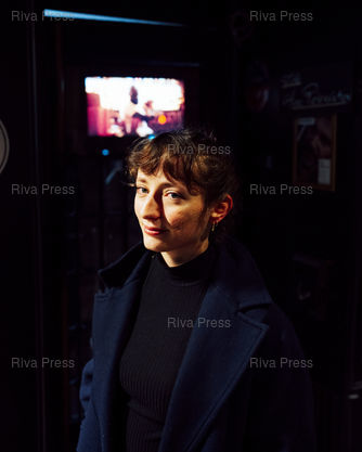 Légende : Solène Cairoli, contrebassiste, devant le 38Riv Jazz Club. Paris, le 22 janvier 2026. © Lucien Lung / Riva Press