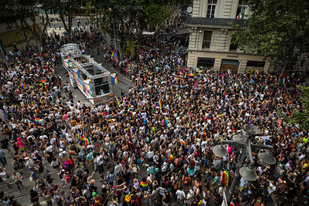 Légende : Reportage lors de la Pride dans les rues de Marseille le 06 juillet 2024 ***** Pride march in Marseille streets on July 6, 2024 ***** PHOTO : CLEMENT MAHOUDEAU / RIVA PRESS