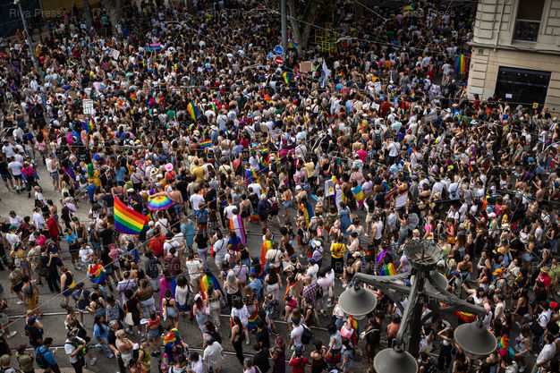 Légende : Reportage lors de la Pride dans les rues de Marseille le 06 juillet 2024 ***** Pride march in Marseille streets on July 6, 2024 ***** PHOTO : CLEMENT MAHOUDEAU / RIVA PRESS