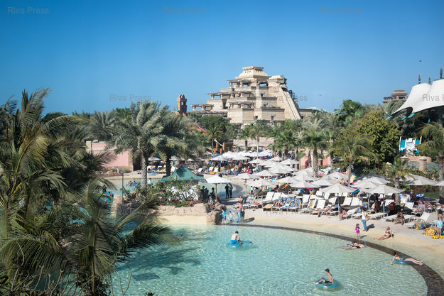 Légende : Vue generale sur l'Aquaventure Waterpark - Atlantis The Palm, Dubai, Emirats Arabes Unis, le 3 avril 2015 ***** Generic view over the Aquaventure Waterpark - Atlantis The Palm, Dubai, United Arab Emirates, 03 April 2015 ***** PHOTO : CLEMENT MAHOUDEAU / RIVA PRESS