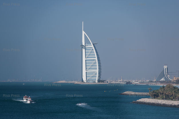 Légende : Vue generale sur la tour Burj al Arab Jumeirah, Dubai, Emirats Arabes Unis, le 3 avril 2015 ***** Generic view over the Burj al Arab Jumeirah tower, Dubai, United Arab Emirates, 03 April 2015 ***** PHOTO : CLEMENT MAHOUDEAU / RIVA PRESS