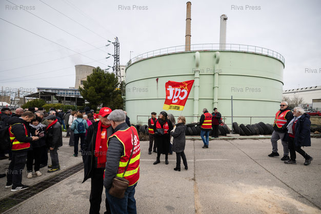 Légende : Meeting de la CGT a la centrale de Gardanne le 13 Fevrier 2026. Le projet de methanisation porte par les salaries de la centrale de Provence est attendu pour la fin 2028. PHOTO : CLEMENT MAHOUDEAU / RIVA PRESS