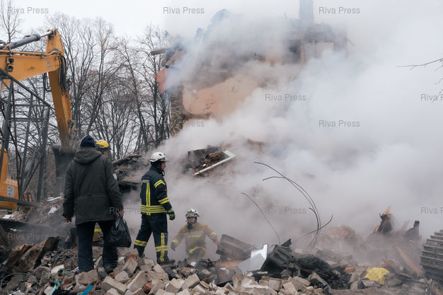 Légende : Un batiment residentiel du nord-est de Kharkiv en Ukraine detruit par un missile balistique tire par la Russie dans la nuit du 6 au 7 mars 2026. L'attaque a tue au moins 11 personnes dont 2 enfants. Selon le procureur regional de Kharkiv, la Russie aurait utilise un nouveau type de missile nomme "Izdeliye-30", une version modernisee du missile de croisiere Kh-101. Kharkiv, 7 mars 2026. Teo Manisier / Riva Press /// A residential building destroyed by a Russian ballistic missile in nordeast Kharkiv, Ukraine, in the night of the 6th-7th March 2026. The attack killed at least 11 including 2 children. According to the regional prosecutor of Kharkiv, Russia allegedly used a new type of missile called "Izdeliye-30", a modernized version of the Kh-101 cruise missile. Kharkiv, March 7th 2026. Teo Manisier / Riva Press