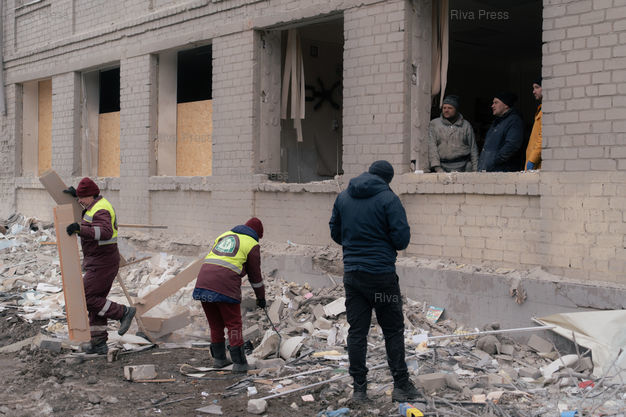 Légende : Un batiment residentiel du nord-est de Kharkiv en Ukraine detruit par un missile balistique tire par la Russie dans la nuit du 6 au 7 mars 2026. L'attaque a tue au moins 11 personnes dont 2 enfants. Selon le procureur regional de Kharkiv, la Russie aurait utilise un nouveau type de missile nomme "Izdeliye-30", une version modernisee du missile de croisiere Kh-101. Kharkiv, 7 mars 2026. Teo Manisier / Riva Press /// A residential building destroyed by a Russian ballistic missile in nordeast Kharkiv, Ukraine, in the night of the 6th-7th March 2026. The attack killed at least 11 including 2 children. According to the regional prosecutor of Kharkiv, Russia allegedly used a new type of missile called "Izdeliye-30", a modernized version of the Kh-101 cruise missile. Kharkiv, March 7th 2026. Teo Manisier / Riva Press