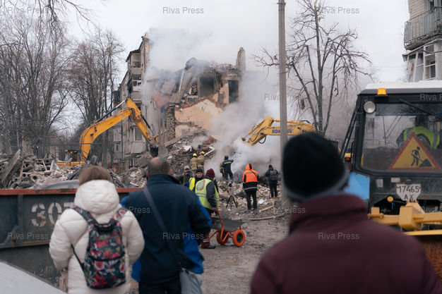 Légende : Un batiment residentiel du nord-est de Kharkiv en Ukraine detruit par un missile balistique tire par la Russie dans la nuit du 6 au 7 mars 2026. L'attaque a tue au moins 11 personnes dont 2 enfants. Selon le procureur regional de Kharkiv, la Russie aurait utilise un nouveau type de missile nomme "Izdeliye-30", une version modernisee du missile de croisiere Kh-101. Kharkiv, 7 mars 2026. Teo Manisier / Riva Press /// A residential building destroyed by a Russian ballistic missile in nordeast Kharkiv, Ukraine, in the night of the 6th-7th March 2026. The attack killed at least 11 including 2 children. According to the regional prosecutor of Kharkiv, Russia allegedly used a new type of missile called "Izdeliye-30", a modernized version of the Kh-101 cruise missile. Kharkiv, March 7th 2026. Teo Manisier / Riva Press