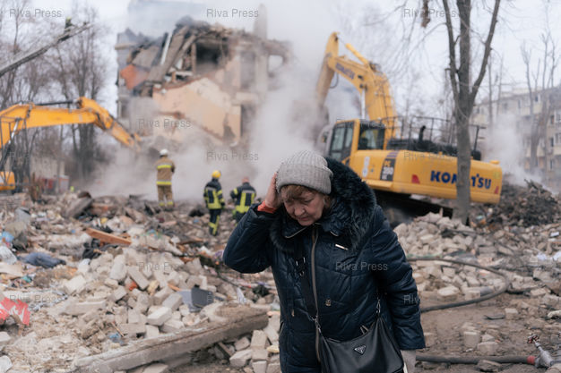 Légende : Un batiment residentiel du nord-est de Kharkiv en Ukraine detruit par un missile balistique tire par la Russie dans la nuit du 6 au 7 mars 2026. L'attaque a tue au moins 11 personnes dont 2 enfants. Selon le procureur regional de Kharkiv, la Russie aurait utilise un nouveau type de missile nomme "Izdeliye-30", une version modernisee du missile de croisiere Kh-101. Kharkiv, 7 mars 2026. Teo Manisier / Riva Press /// A residential building destroyed by a Russian ballistic missile in nordeast Kharkiv, Ukraine, in the night of the 6th-7th March 2026. The attack killed at least 11 including 2 children. According to the regional prosecutor of Kharkiv, Russia allegedly used a new type of missile called "Izdeliye-30", a modernized version of the Kh-101 cruise missile. Kharkiv, March 7th 2026. Teo Manisier / Riva Press