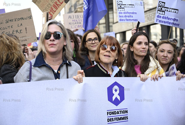 Légende : Manifestation à l'occasion de la Journée internationale des droits des femmes, pour défendre les droits des femmes, dénoncer les violences sexuelles et la montée du conservatisme. Gisèle Pelicot, victime des viols de dizaines d'hommes organisés par son ex-mari et devenue une figure mondiale de la lutte contre les violences sexuelles, et sa fille Caroline Darian, avec la Fondation des femmes. A droite, Anne-Cécile Mailfert, présidente de la Fondation des femmes, et la chanteuse Suzane, dont la chanson "Je t'accuse" dénonce les violences sexuelles /// Demonstration on the occasion of International Women's Day, to defend women's rights, denounce sexual violence and the rise of conservatism. Gisèle Pelicot, a victim of rape by dozens of men orchestrated by her ex-husband and who has become a global figure in the fight against sexual violence, and her daughter Caroline Darian, with the Women's Foundation. On the right, Anne-Cécile Mailfert, president of the Women's Foundation, and the singer Suzane, whose song "Je t'accuse" denounces sexual violence - Paris - 08/03/2026 - Photo © Lionel Préau +33 (0)6 68 12 83 77