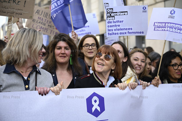 Légende : Manifestation à l'occasion de la Journée internationale des droits des femmes, pour défendre les droits des femmes, dénoncer les violences sexuelles et la montée du conservatisme. Gisèle Pelicot, victime des viols de dizaines d'hommes organisés par son ex-mari et devenue une figure mondiale de la lutte contre les violences sexuelles, et sa fille Caroline Darian, avec la Fondation des femmes. A droite, Anne-Cécile Mailfert, présidente de la Fondation des femmes, et la chanteuse Suzane, dont la chanson "Je t'accuse" dénonce les violences sexuelles /// Demonstration on the occasion of International Women's Day, to defend women's rights, denounce sexual violence and the rise of conservatism. Gisèle Pelicot, a victim of rape by dozens of men orchestrated by her ex-husband and who has become a global figure in the fight against sexual violence, and her daughter Caroline Darian, with the Women's Foundation. On the right, Anne-Cécile Mailfert, president of the Women's Foundation, and the singer Suzane, whose song "Je t'accuse" denounces sexual violence - Paris - 08/03/2026 - Photo © Lionel Préau +33 (0)6 68 12 83 77