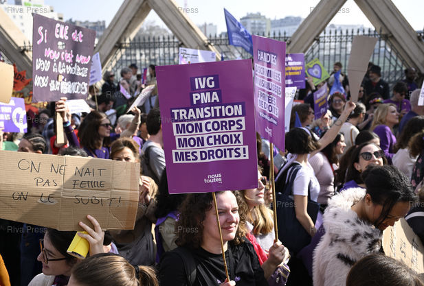 Légende : Manifestation à l'occasion de la Journée internationale des droits des femmes, pour défendre les droits des femmes, dénoncer les violences sexuelles et la montée du conservatisme. IVG, PMA, transition /// Demonstration on the occasion of International Women's Day, to defend women's rights, denounce sexual violence and the rise of conservatism. Abortion, Medically assisted reproduction, gender transition - Paris - 08/03/2026 - Photo © Lionel Préau +33 (0)6 68 12 83 77