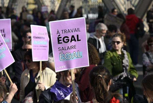 Légende : Manifestation à l'occasion de la Journée internationale des droits des femmes, pour défendre les droits des femmes, dénoncer les violences sexuelles et la montée du conservatisme. "A travail égal, salaire égal" /// Demonstration on the occasion of International Women's Day, to defend women's rights, denounce sexual violence and the rise of conservatism. "Equal pay for equal work" - Paris - 08/03/2026 - Photo © Lionel Préau +33 (0)6 68 12 83 77
