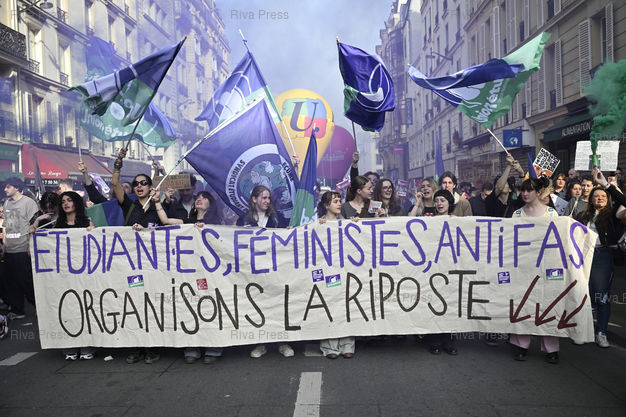 Légende : Manifestation à l'occasion de la Journée internationale des droits des femmes, pour défendre les droits des femmes, dénoncer les violences sexuelles et la montée du conservatisme. Etudiantes, féministes, antifas /// Demonstration on the occasion of International Women's Day, to defend women's rights, denounce sexual violence and the rise of conservatism. Students, feminists, antifascists - Paris - 08/03/2026 - Photo © Lionel Préau +33 (0)6 68 12 83 77