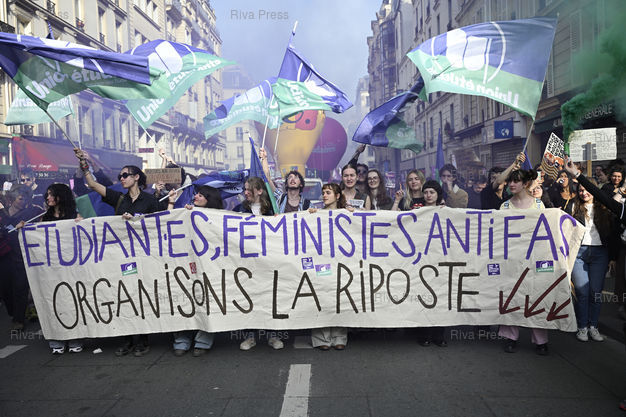 Légende : Manifestation à l'occasion de la Journée internationale des droits des femmes, pour défendre les droits des femmes, dénoncer les violences sexuelles et la montée du conservatisme. Etudiantes, féministes, antifas /// Demonstration on the occasion of International Women's Day, to defend women's rights, denounce sexual violence and the rise of conservatism. Students, feminists, antifascists - Paris - 08/03/2026 - Photo © Lionel Préau +33 (0)6 68 12 83 77