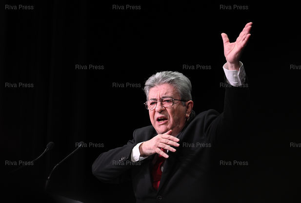 Légende : Meeting de soutien à la liste de la France Insoumise "Nouveau Paris Populaire" pour les élections municipales. Jean-Luc Mélenchon /// Meeting in support of the La France Insoumise list "Nouveau Paris Populaire" for the municipal elections. Jean-Luc Mélenchon - Paris - 09/03/2026 - Photo © Lionel Préau +33 (0)6 68 12 83 77