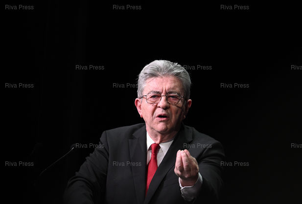 Légende : Meeting de soutien à la liste de la France Insoumise "Nouveau Paris Populaire" pour les élections municipales. Jean-Luc Mélenchon /// Meeting in support of the La France Insoumise list "Nouveau Paris Populaire" for the municipal elections. Jean-Luc Mélenchon - Paris - 09/03/2026 - Photo © Lionel Préau +33 (0)6 68 12 83 77
