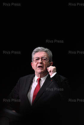 Légende : Meeting de soutien à la liste de la France Insoumise "Nouveau Paris Populaire" pour les élections municipales. Jean-Luc Mélenchon /// Meeting in support of the La France Insoumise list "Nouveau Paris Populaire" for the municipal elections. Jean-Luc Mélenchon - Paris - 09/03/2026 - Photo © Lionel Préau +33 (0)6 68 12 83 77