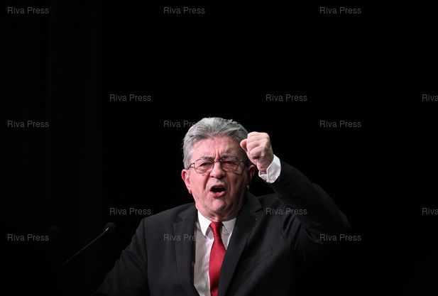 Légende : Meeting de soutien à la liste de la France Insoumise "Nouveau Paris Populaire" pour les élections municipales. Jean-Luc Mélenchon /// Meeting in support of the La France Insoumise list "Nouveau Paris Populaire" for the municipal elections. Jean-Luc Mélenchon - Paris - 09/03/2026 - Photo © Lionel Préau +33 (0)6 68 12 83 77