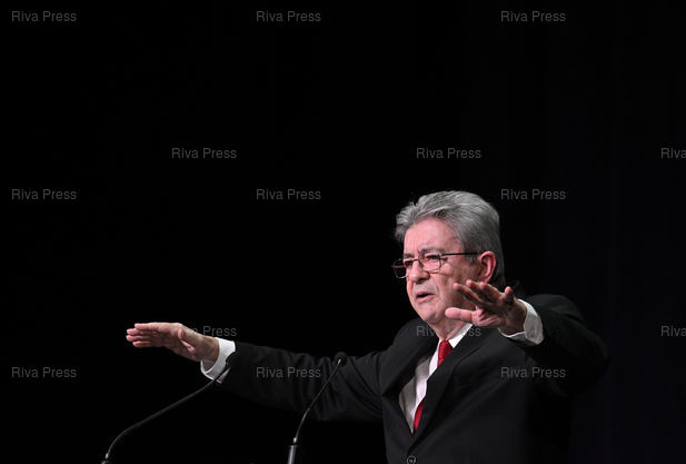 Légende : Meeting de soutien à la liste de la France Insoumise "Nouveau Paris Populaire" pour les élections municipales. Jean-Luc Mélenchon /// Meeting in support of the La France Insoumise list "Nouveau Paris Populaire" for the municipal elections. Jean-Luc Mélenchon - Paris - 09/03/2026 - Photo © Lionel Préau +33 (0)6 68 12 83 77