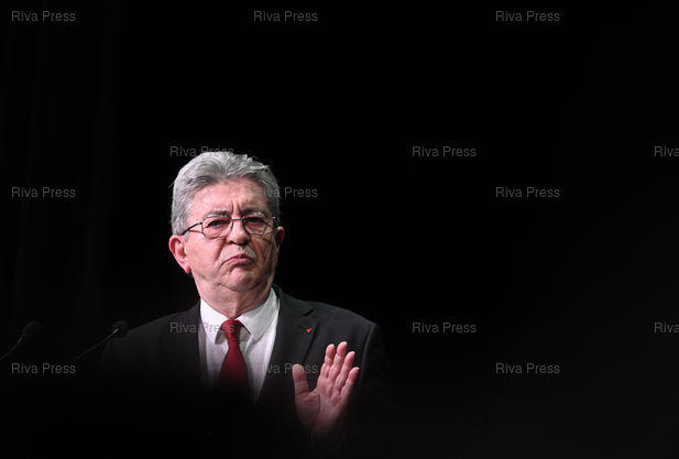 Légende : Meeting de soutien à la liste de la France Insoumise "Nouveau Paris Populaire" pour les élections municipales. Jean-Luc Mélenchon /// Meeting in support of the La France Insoumise list "Nouveau Paris Populaire" for the municipal elections. Jean-Luc Mélenchon - Paris - 09/03/2026 - Photo © Lionel Préau +33 (0)6 68 12 83 77