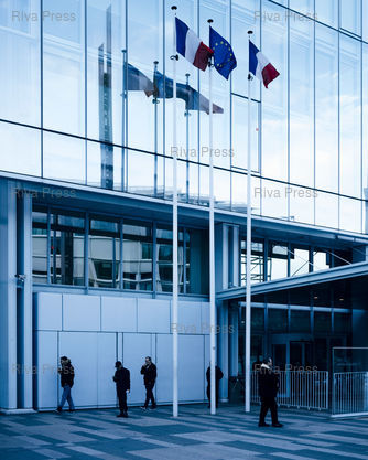 Légende : Entrée du tribunal de Paris, porte de Clichy, le 11 février 2026. © Lucien Lung / Riva Press