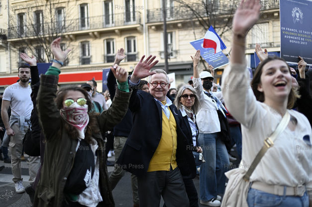 Légende : Manifestation pour les droits des femmes à l'occasion de la Journée internationale des droits des femmes. En fin de manifestation, encadré par la poilice, le collectif d'identitaires d'extrême droite Némésis, qui se revendique féministe /// Demonstration for women's rights on the occasion of International Women's Day. At the end of the demonstration, supervised by the police, the far-right identity collective Nemesis, which claims to be feminist - Paris - 08/03/2025 - Photo © Lionel Préau +33 (0)6 68 12 83 77