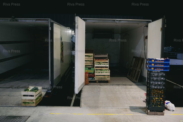 Légende : Toulouse, le 13 février 2026 - Quai de chargement au Carreau des producteurs du MIN (Marché d'Intérêt National) de Toulouse où sont réunis les producteurs locaux de fruits et légumes. PHOTO: Vincent NGUYEN / Riva Press