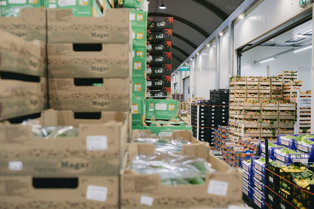 Légende : Toulouse, le 13 février 2026 - La grande halle des grossistes de fruits et légumes au MIN (Marché d'Intérêt National) de Toulouse. PHOTO: Vincent NGUYEN / Riva Press