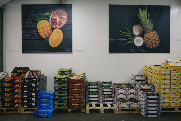 Légende : Toulouse, le 13 février 2026 - Fruits exotiques importés notamment du Pérou et du Brésil à la grande halle des grossistes de fruits et légumes au MIN (Marché d'Intérêt National) de Toulouse. PHOTO: Vincent NGUYEN / Riva Press