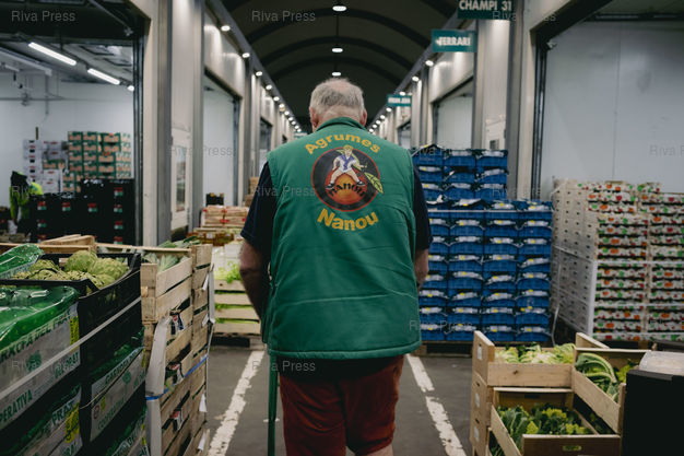 Légende : Toulouse, le 13 février 2026 - Un employé de Hortal, grossiste en fruits et légumes notamment importés d'Espagne prépare une commande à la grande halle des grossistes de fruits et légumes au MIN (Marché d'Intérêt National) de Toulouse. PHOTO: Vincent NGUYEN / Riva Press