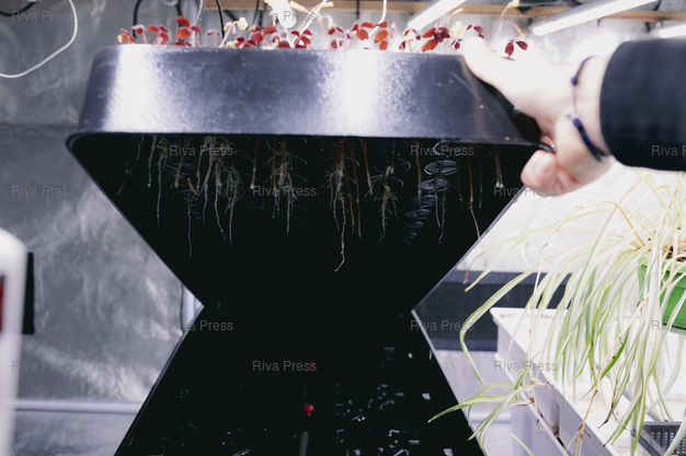 Légende : Toulouse, le 13 février 2026 - Culture de fleurs comestibles en hydroponie par la société Grow Deal, située dans le sous-sol du MIN (Marché d'Intérêt National) de Toulouse. PHOTO: Vincent NGUYEN / Riva Press