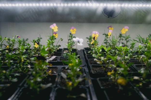 Légende : Toulouse, le 13 février 2026 - Culture de fleurs comestibles en hydroponie par la société Grow Deal, située dans le sous-sol du MIN (Marché d'Intérêt National) de Toulouse. PHOTO: Vincent NGUYEN / Riva Press