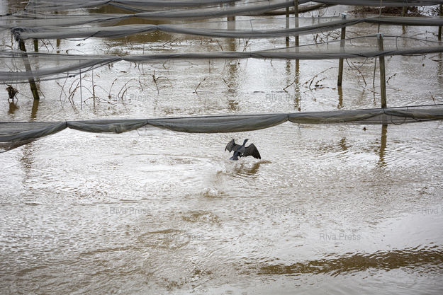 Légende : Aiguillon, le 17 février 2026 - Les champs de kiwis de Maria Frechiami. arboricultrice, sont inondés par la crue du Lot. PHOTO: Vincent NGUYEN / Riva Press