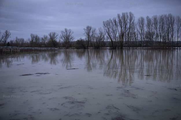 Légende : Clermont-Dessous, le 17 février 2026 - Des cultures inondées situés entre la Garonne en crue et la D813 au niveau de Bazens. PHOTO: Vincent NGUYEN / Riva Press