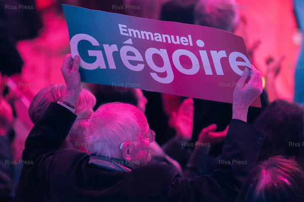 Légende : Meeting d'Emmanuel Gregoire, candidat socialiste à la tête de l'union de la gauche pour les municipales à Paris les 15 et 22 mars. Cirque d'Hiver Bouglione, Paris, 12 mars 2026. Teo Manisier / Riva Press /// Meeting of Emmanuel Gregoire, Socialist candidate leading the left-wing coalition for the Paris municipal elections on March 15 and 22. Cirque d'Hiver Bouglione, Paris, March 12, 2026. Teo Manisier / Riva Press