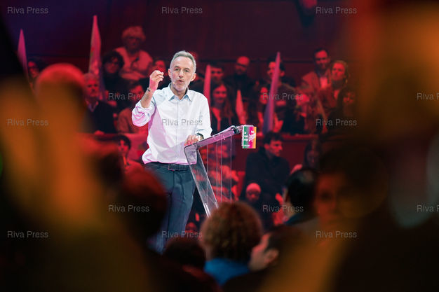 Légende : Meeting d'Emmanuel Gregoire, candidat socialiste à la tête de l'union de la gauche pour les municipales à Paris les 15 et 22 mars. Cirque d'Hiver Bouglione, Paris, 12 mars 2026. Teo Manisier / Riva Press /// Meeting of Emmanuel Gregoire, Socialist candidate leading the left-wing coalition for the Paris municipal elections on March 15 and 22. Cirque d'Hiver Bouglione, Paris, March 12, 2026. Teo Manisier / Riva Press