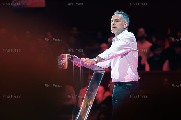 Légende : Meeting d'Emmanuel Gregoire, candidat socialiste à la tête de l'union de la gauche pour les municipales à Paris les 15 et 22 mars. Cirque d'Hiver Bouglione, Paris, 12 mars 2026. Teo Manisier / Riva Press /// Meeting of Emmanuel Gregoire, Socialist candidate leading the left-wing coalition for the Paris municipal elections on March 15 and 22. Cirque d'Hiver Bouglione, Paris, March 12, 2026. Teo Manisier / Riva Press
