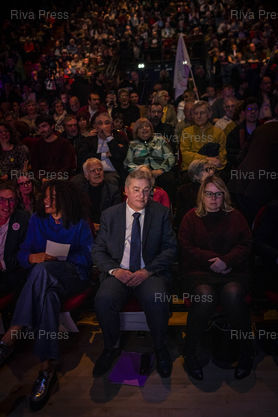 *** Toulouse, March 11, 2026 - Meeting of François Briançon (C with Cécile Cukierman, R, communist senator), member of the Socialist Party who is leading the "Live better" list of the united left without LFI in Toulouse for the municipal elections of March 2026.. Photo: Vincent Nguyen / Riva Press