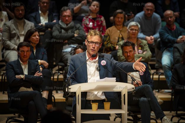*** Toulouse, March 11, 2026 - Régis Godec, leader of the ecologist party in Toulouse. Meeting of François Briançon, member of the Socialist Party who is leading the "Live better" list of the united left without LFI in Toulouse for the municipal elections of March 2026. Photo: Vincent Nguyen / Riva Press