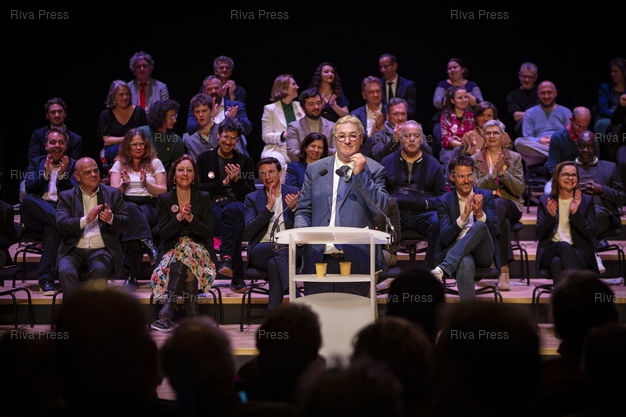 *** Toulouse, March 11, 2026 - Meeting of François Briançon (C), member of the Socialist Party who is leading the "Live better" list of the united left without LFI in Toulouse for the municipal elections of March 2026. Photo: Vincent Nguyen / Riva Press