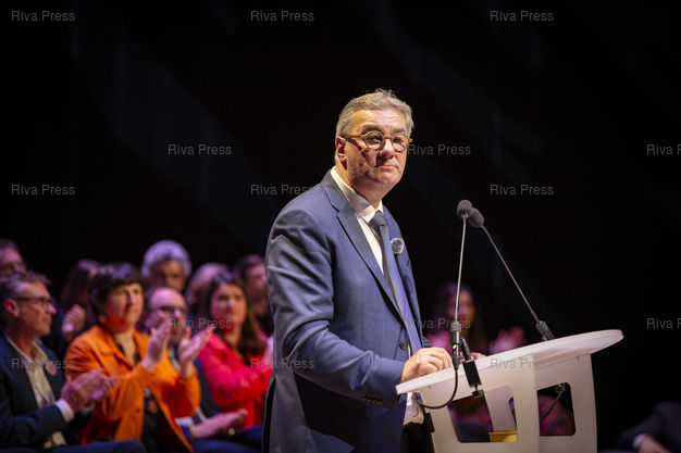 *** Toulouse, March 11, 2026 - Meeting of François Briançon (C), member of the Socialist Party who is leading the "Live better" list of the united left without LFI in Toulouse for the municipal elections of March 2026. Photo: Vincent Nguyen / Riva Press